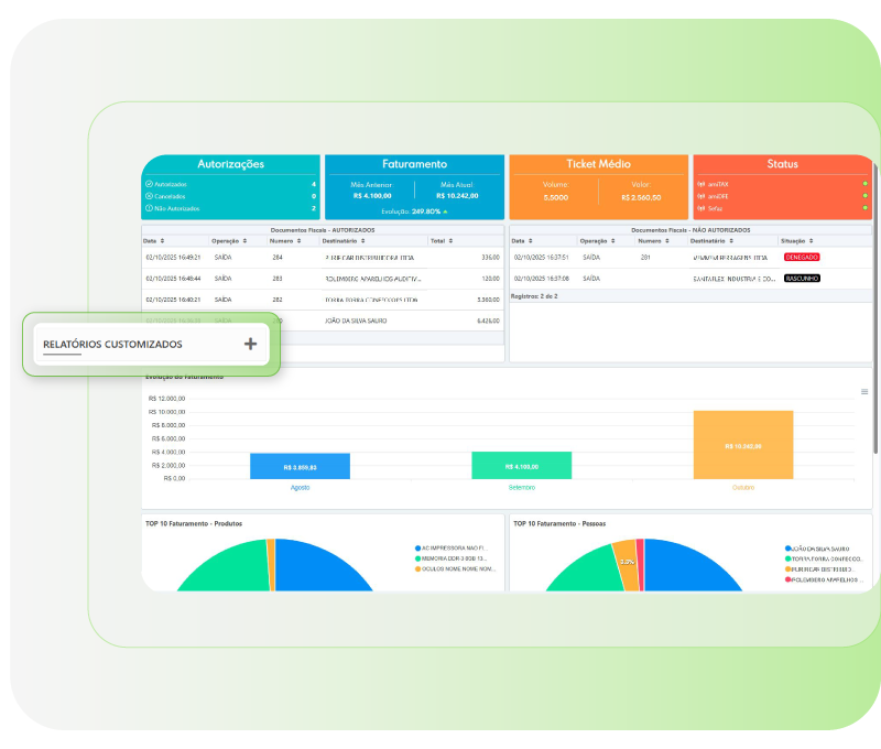 O Evvolua oferece um módulo completo de emissão de notas, com integração automática à SEFAZ e recursos que tornam o processo rápido e confiável.